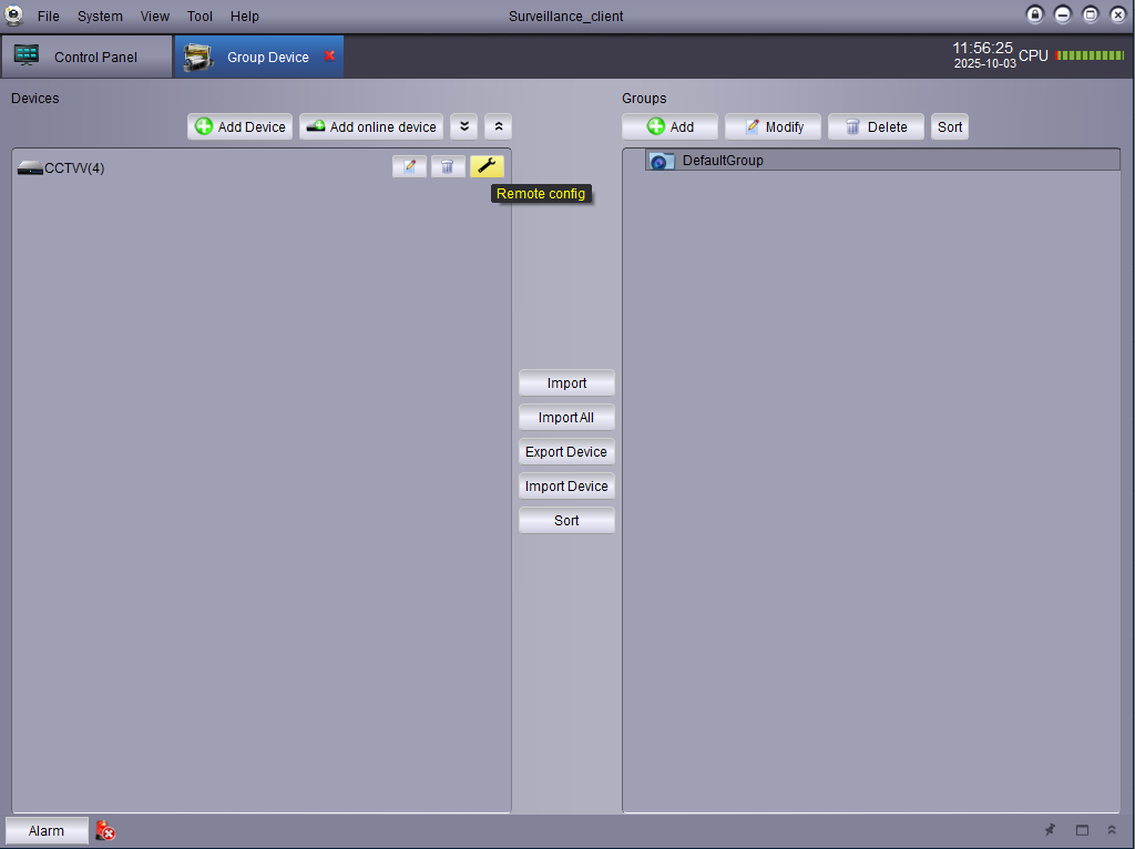 You will want to start by opening the software and then selecting the Group Device option at the top, then find your system in the left box and click on the spanner/wrench icon to get access to the recorder settings.